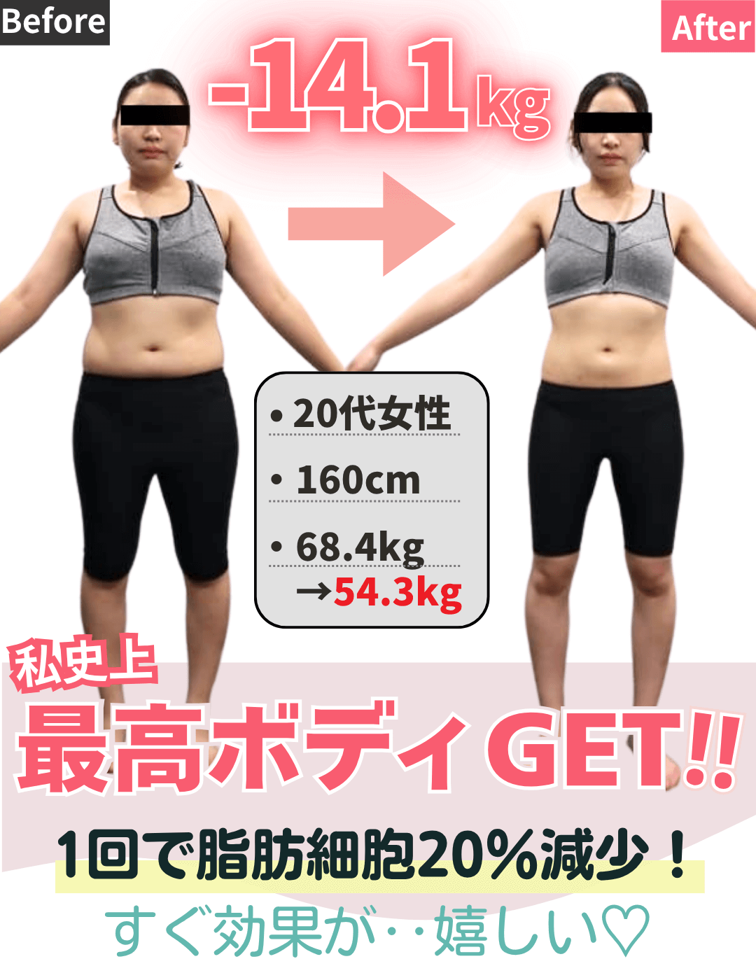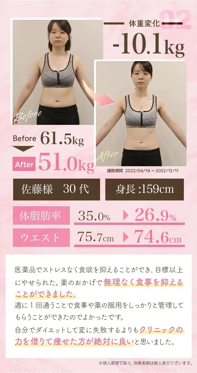 ※3ヶ月医療痩身ボディメイクを契約されたモニター対象の会員の代表的な事例を提示しています。※効果には個人差があります